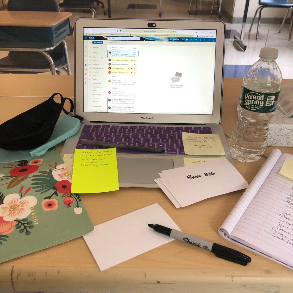 I got from 162 emails down to 26, packed the remaining things in my classroom, zip tied the cabinets, labeled everything left out of the cabinets with my room number so the custodians can put things back in the right classroom after they empty it to do the floors, finished my to-do list, drank my water and turned in my keys. And then, in an instant, this year was over. I walked out of the building feeling strangely stuck between worlds.